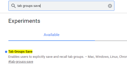 2、在搜索框中输入tab groups save