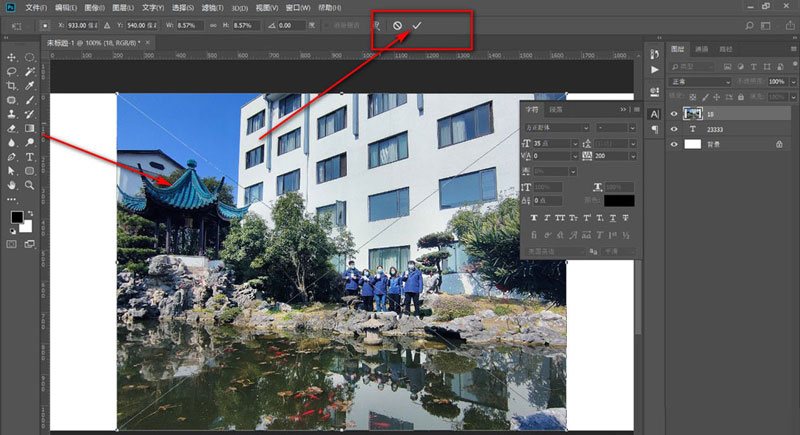 3.这是因为当前文字处于编辑状态,点击上方的小对勾。