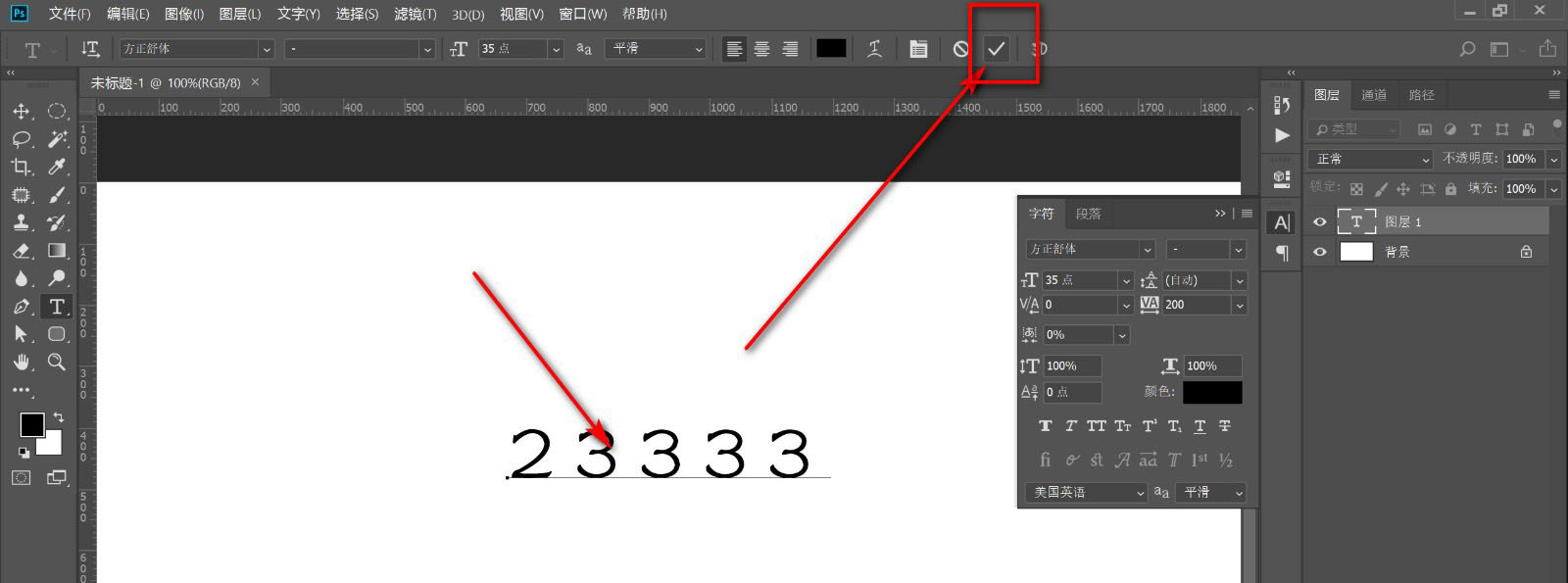 注意:当前文字处于编辑状态,点击上方的小对勾。