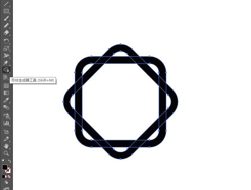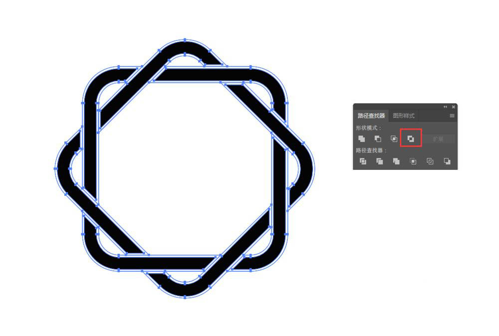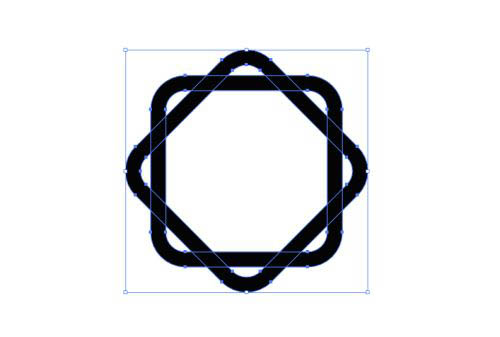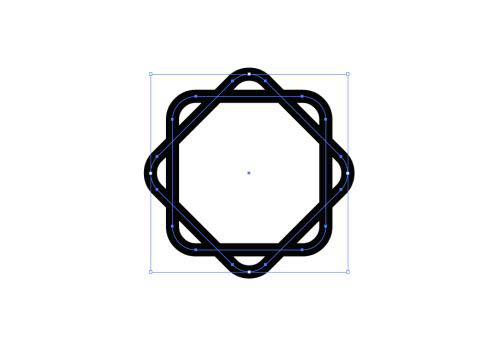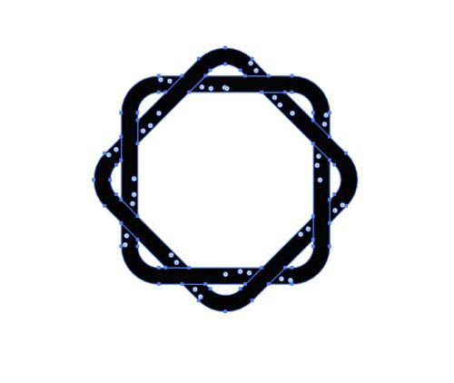 然后按ctrl+F原位复制一个,旋转45度,全选,选择“直接选择工具”将所有的直角内缩为圆角,对象>路径>轮廓化描边