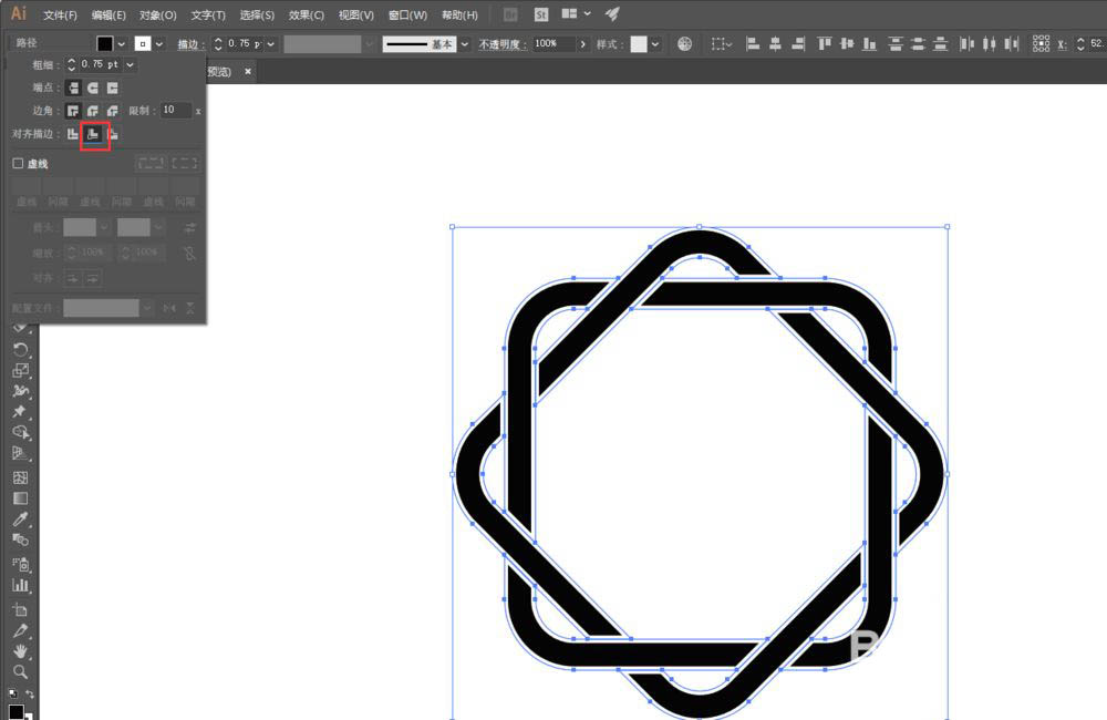 随后全选,内描边为0.75,再全选,对象>路径>轮廓化描边