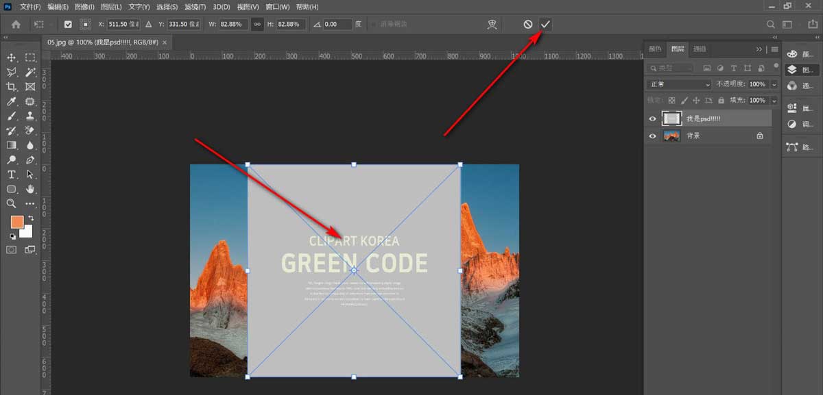 2.然后鼠标直接拖拽文件到画布上,点击上方的对号或者按回车键确定。