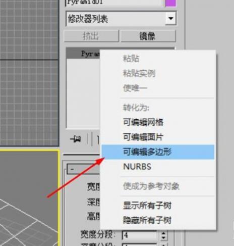 首先打开3dmax,建立一个四棱锥模型。宽度,深度和高度分段自己根据需要而定。
