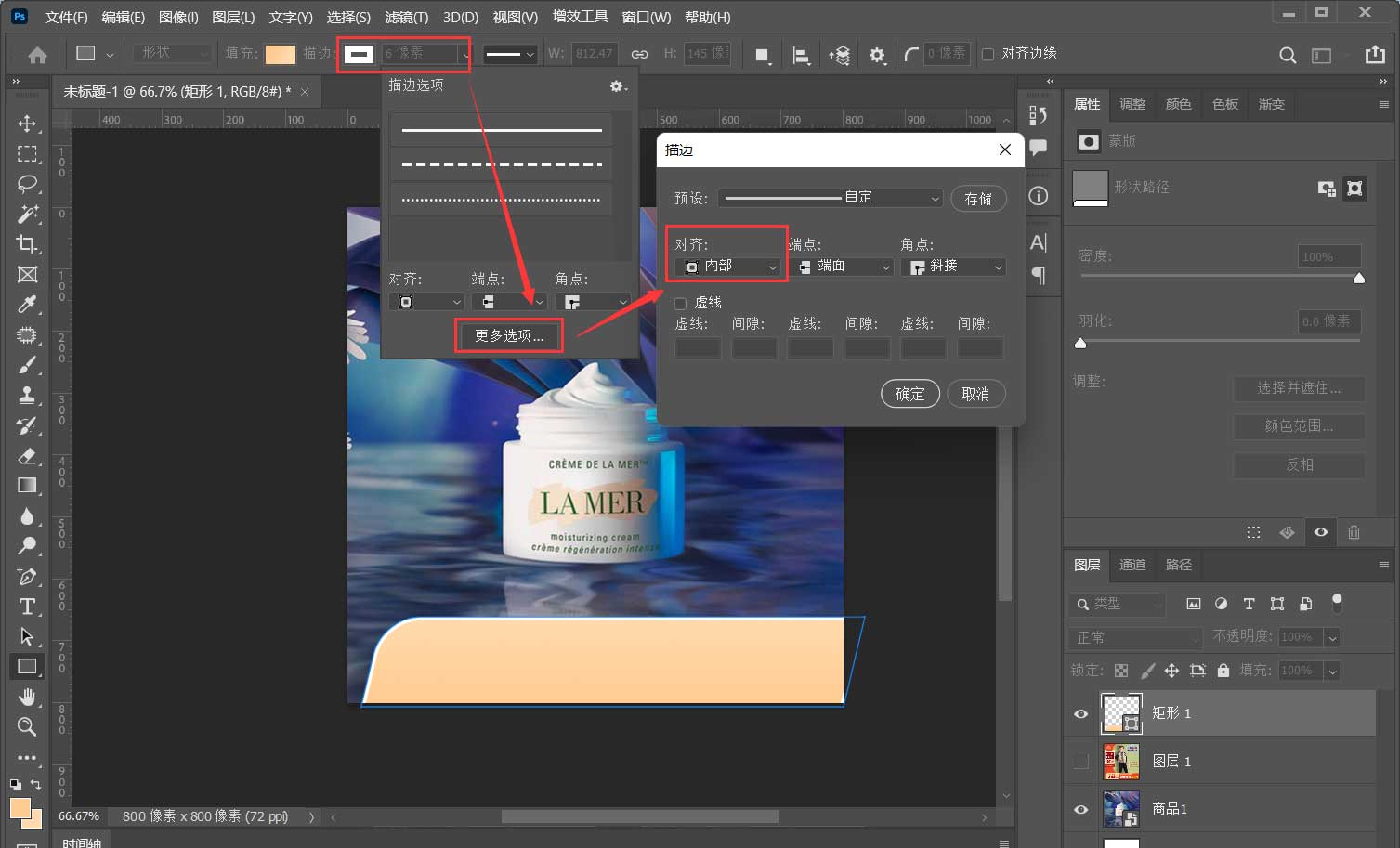 之后为图形添加一个6像素的描边,并点击【更多选项】,把对齐方式改为【内部】。