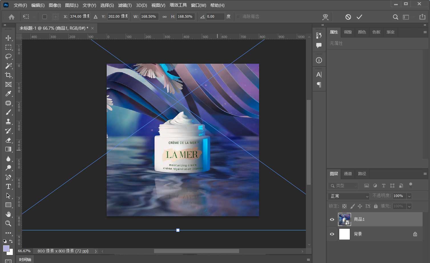 接着将商品移动到画布的正中间位置,按【回车键】确认此缩放效果。