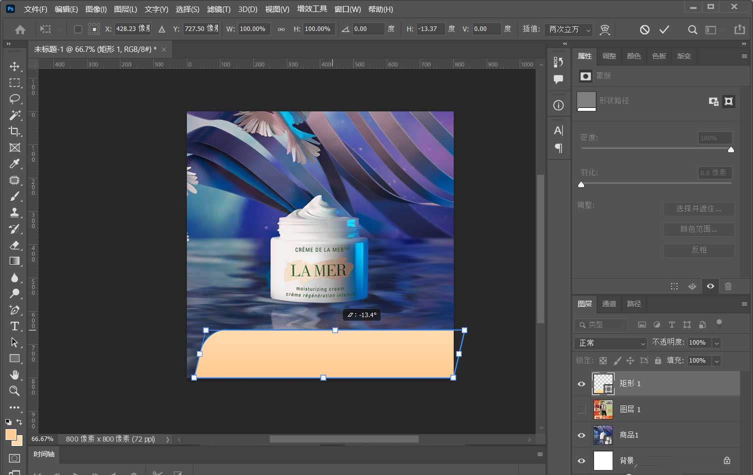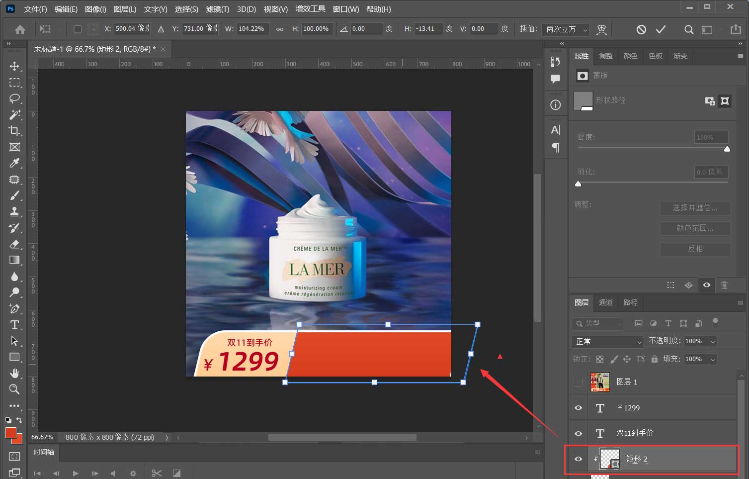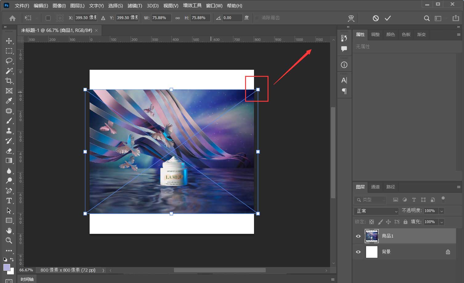 然后导入一张商品图片,按【CTRL+T】进行变换,按住【SHIFT】用鼠标拖动图片右上角进行缩放调整。