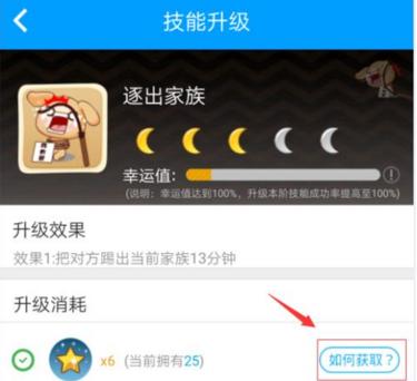1、用户可以进入技能升级的页面,然后就可以看到“如何获得”金星星的方法;