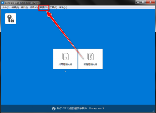 2、然后在Bandizip窗口里,点击菜单栏上的“视图”。