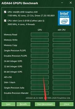 3、打开这款软件之后,点击下方的“start benchmark”。