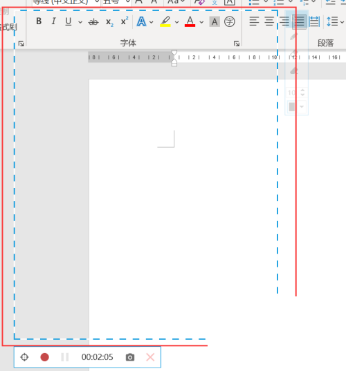 2、然后屏幕中间弹出一个虚线方框。