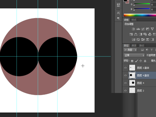 2、然后使用参考线找到正沿中两个小圆的圆心,然后绘制两个小圆。