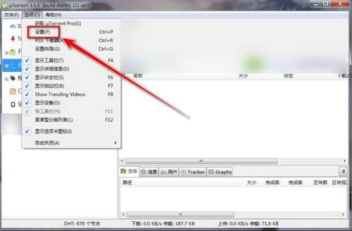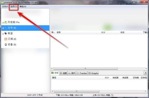 第一步:在utorrent窗口中,点击菜单栏上的“选项”。