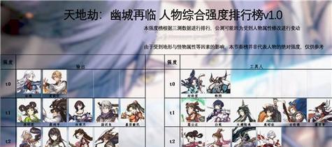 在游戏中,无论是PVE还是PVP,节奏感都是非常重要的一个因素。而在异界事务所开服T0角色节奏榜中,更是成为了决定胜负的关键。下面,我们就来看看这个节奏榜都包含哪些内容,以及如何通过它来打造最强角色。