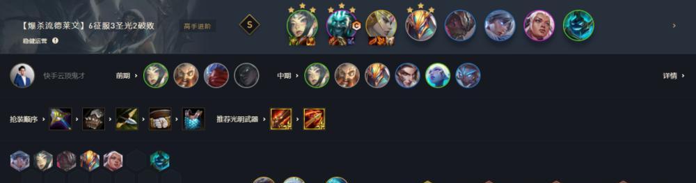 在《英雄联盟》中,德莱文作为一个高机动性且输出强大的上单英雄,一直是玩家们心中的噩梦之一。然而,作为德莱文的天敌,黎明却拥有强大的控制和爆发能力。本文将为大家介绍以黎明征服德莱文的出装攻略,帮助大家在面对德莱文时取得优势。